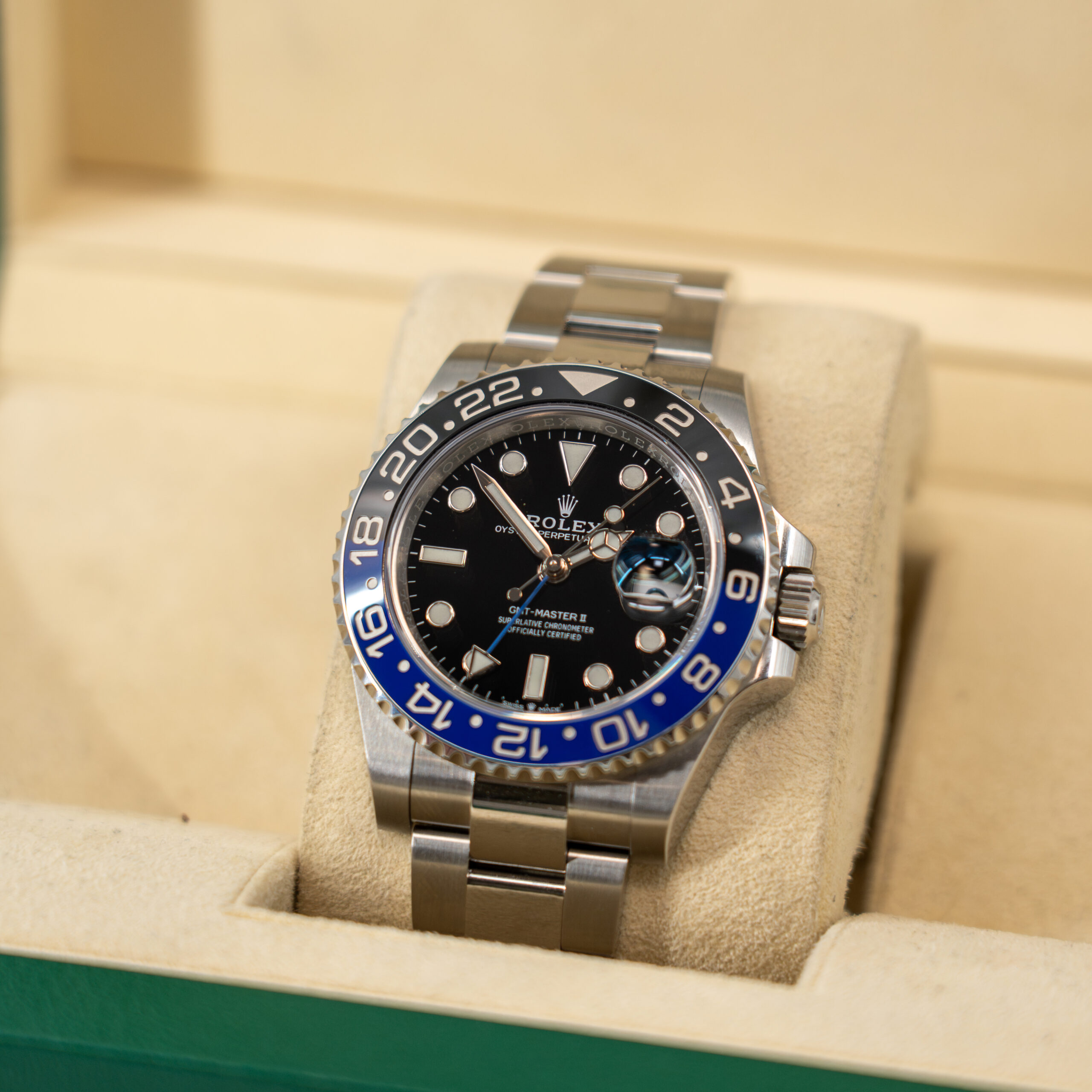 The Iconic “Batman” Bezel: This was the first watch ever to feature a single-block, two-colour Cerachrom ceramic bezel. The striking blue and black insert isn’t just for looks—it’s virtually scratch-proof and resistant to UV fading, ensuring those colors stay vibrant for decades!